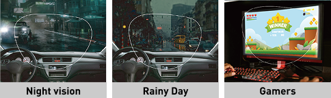 CLEAR+ is the essential you need | BLUE+ protects against harmful blue light | RADIANT+ reduces the glares in low light condition | NEUTRAL+ gives natural color perception | |
